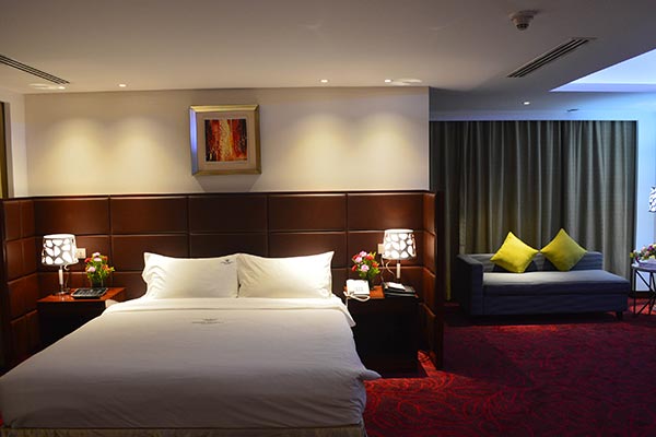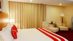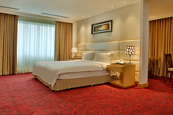 A sprawling suite of over 700 sq. ft., the highlight of this room is the connecting sitting room and dining space with a separate entry / exit to allow guests maximum privacy. The room includes a king size bed.