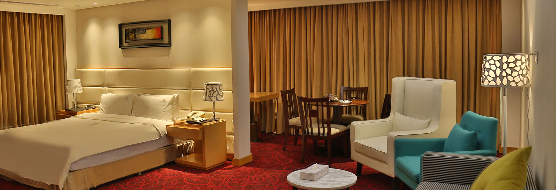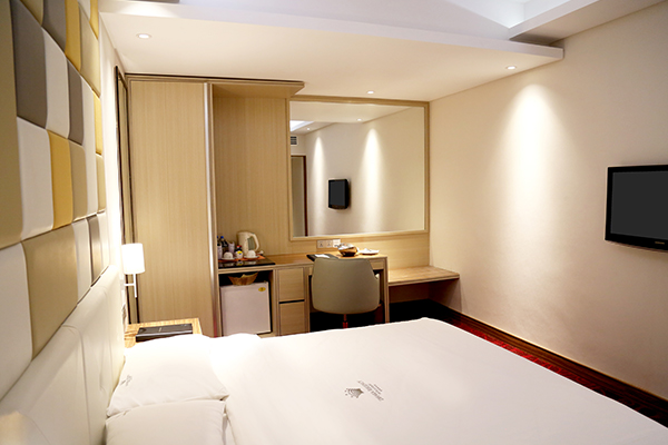 Well-furnished air-conditioned economy guest room with king size bed and over 300 sq. ft. of space, it is only available without windows for sound sleep without the invasion of outdoor noises and unwelcome sunlight in the early mornings.